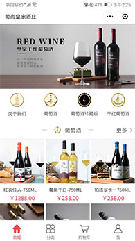 紹興葡尚皇家酒莊小程序是紹興魔方網(wǎng)絡(luò)科技有限公司2019年度開發(fā)的微信小程序,小程序頁面設(shè)計(jì)時(shí)尚簡(jiǎn)潔,是愛品味紅酒和收藏紅酒購(gòu)買小程序,開發(fā)了首頁商城、分類、購(gòu)物車、我的中心等等模塊。